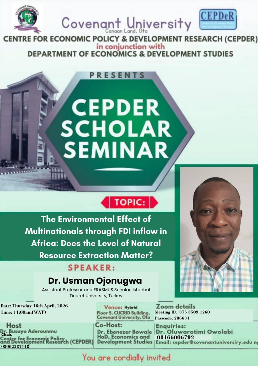 This seminar will explore the environmental implications of foreign direct investment (FDI) in Africa, with particular attention to how natural resource extraction shapes sustainability outcomes.