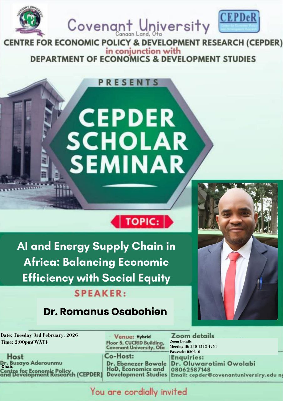 We are honored to host Dr. Romanus Osabuohien, a distinguished scholar and a research fellow in CEPDeR.